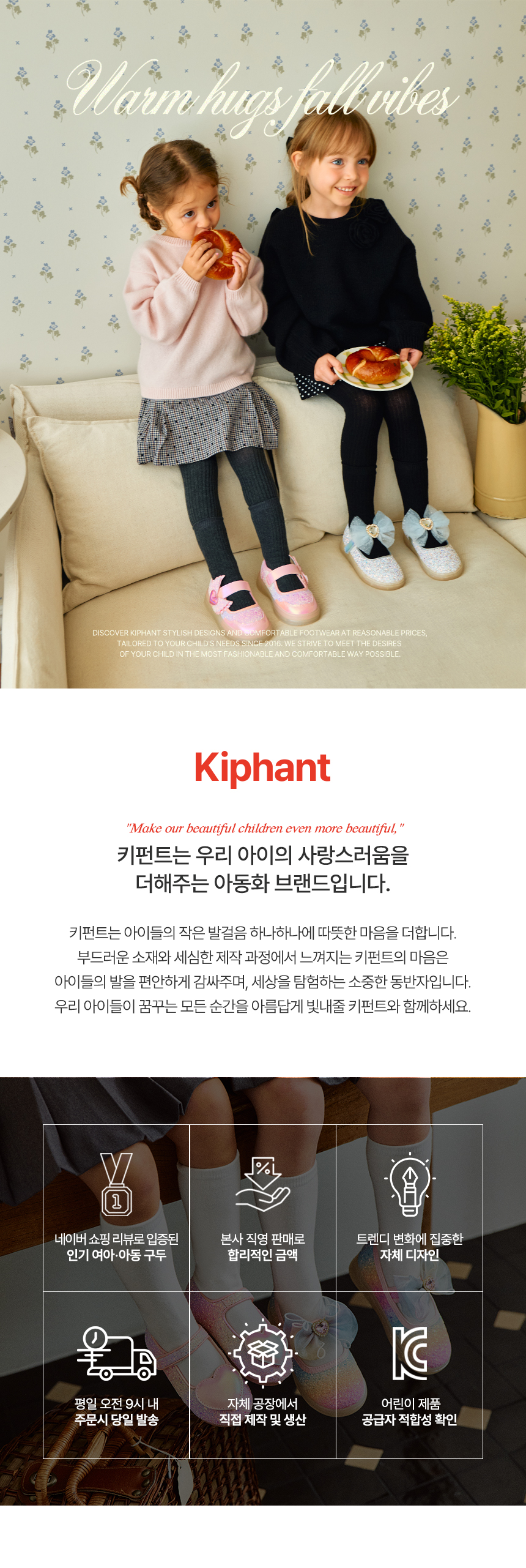 키펀트(KIPHANT)는 '예쁜 우리 아이를 더 예쁘게'라는 슬로건으로, 안정성 및 지속 가능성을 목표로 하는 브랜드입니다. 우리 아이가 꿈꾸는 모든 순간을 아름답게 빛내 줍니다.