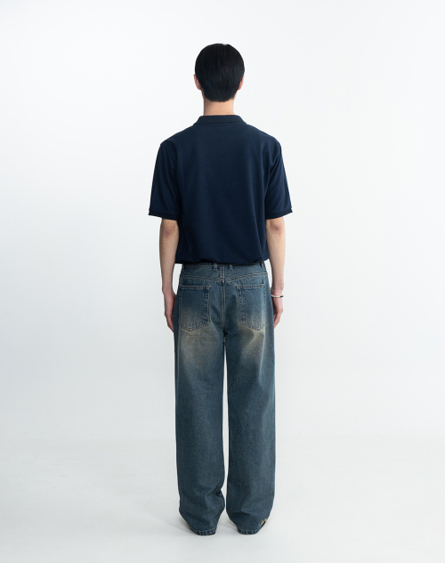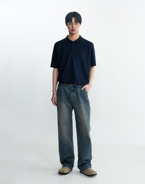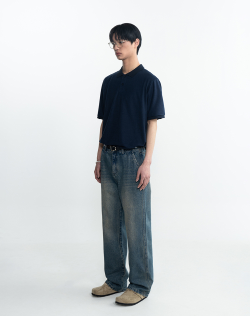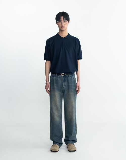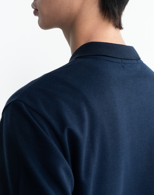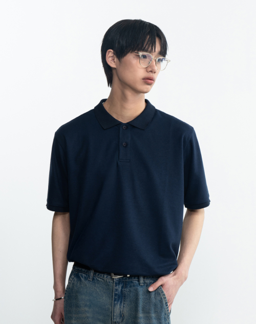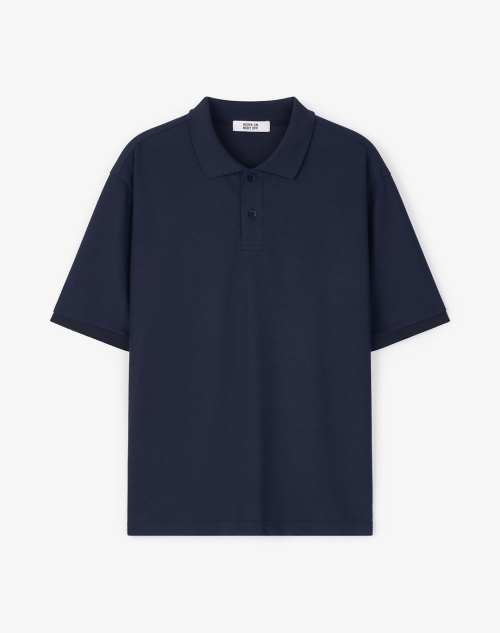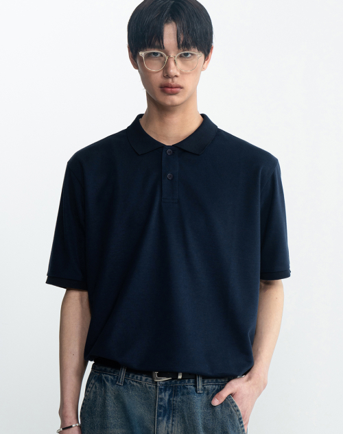 클래식 세미 오버핏 코튼 피케 티셔츠 [네이비]