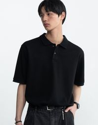 클래식 세미 오버핏 코튼 피케 티셔츠 [블랙]