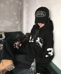 유니콘 바시티 엠블럼 후드티 블랙