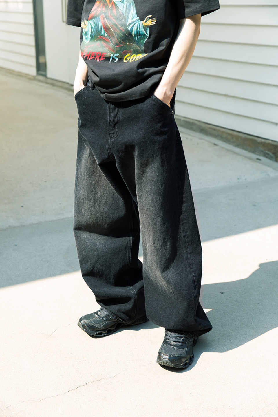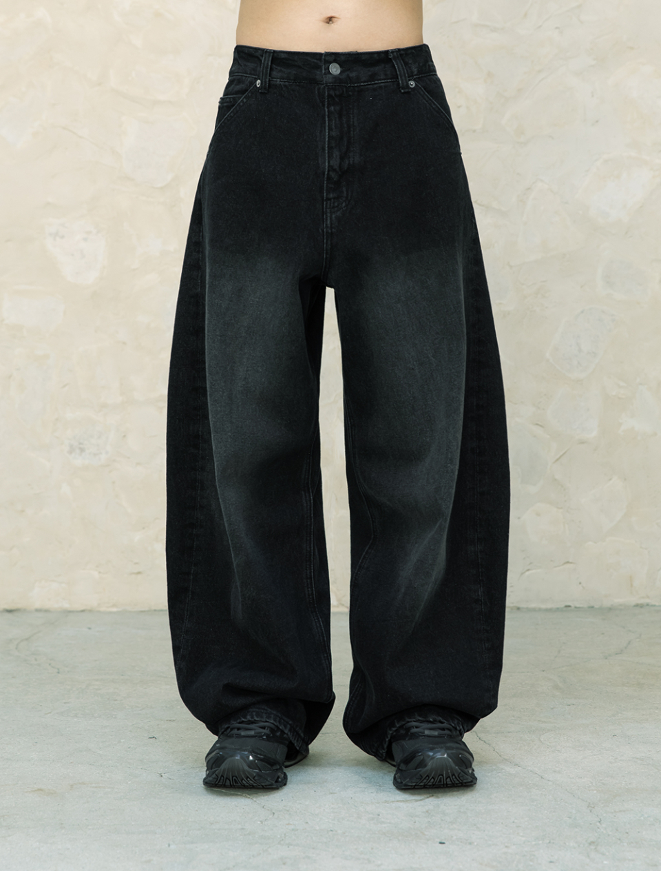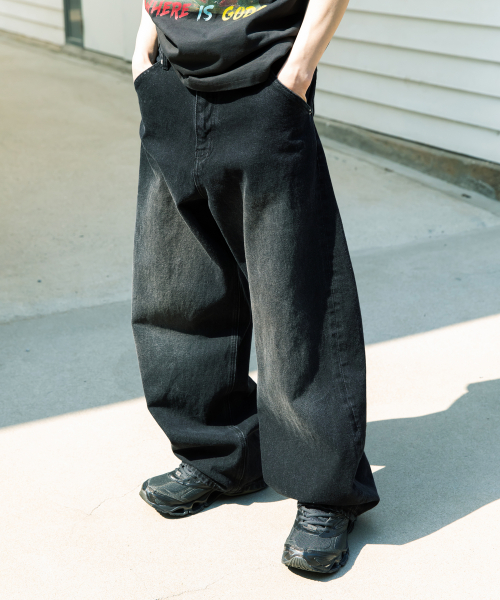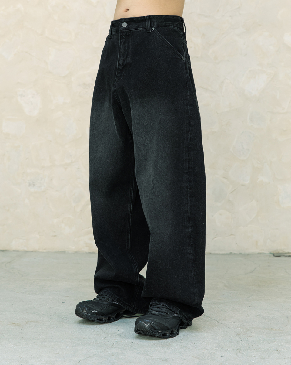 아크 커브드 데님 팬츠 [워시드 블랙]