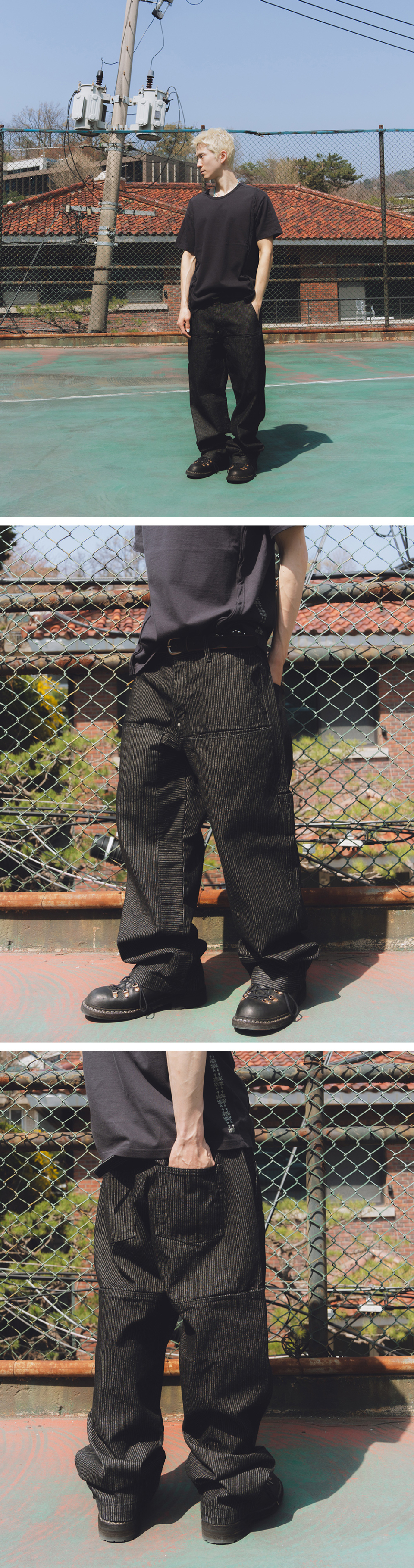 Stripe denim pants / Black