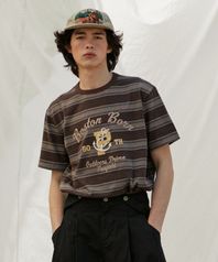멜란지 스트라이프 자수 아트워크 반팔티 다크블랙_FR2KT79U