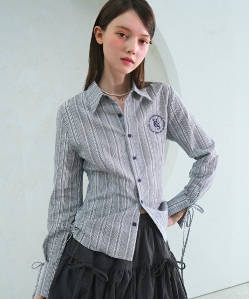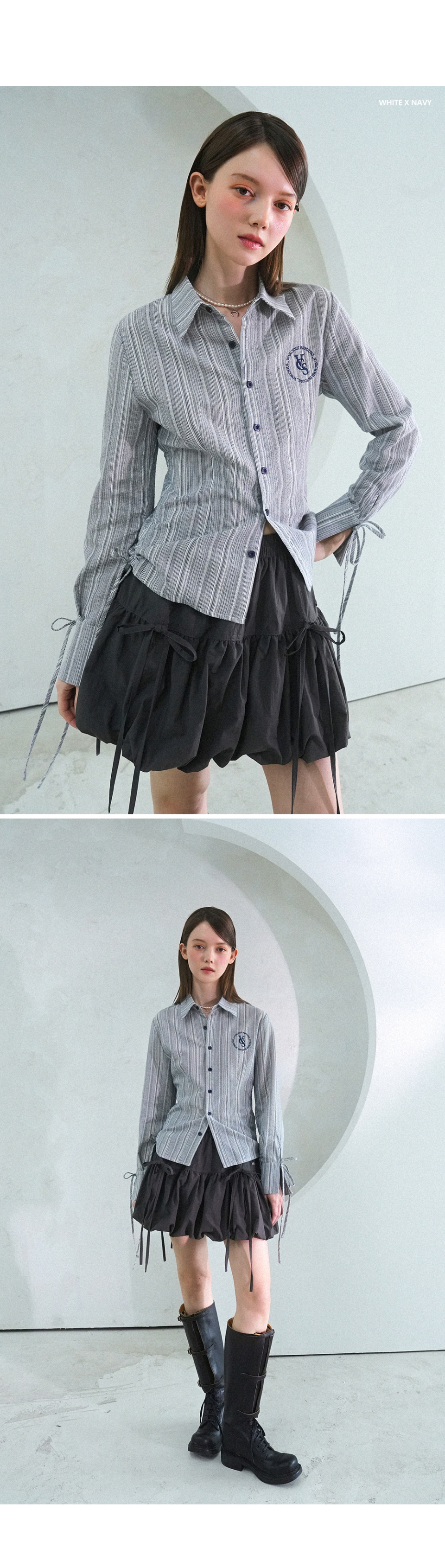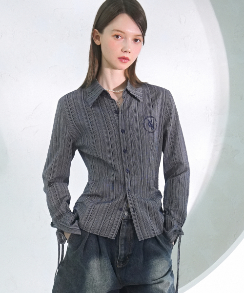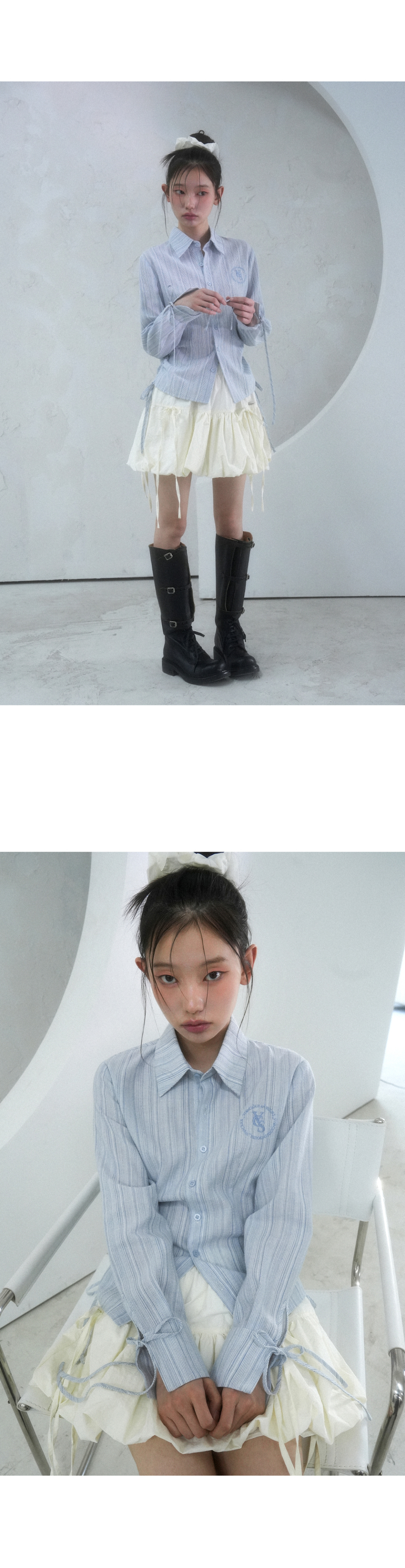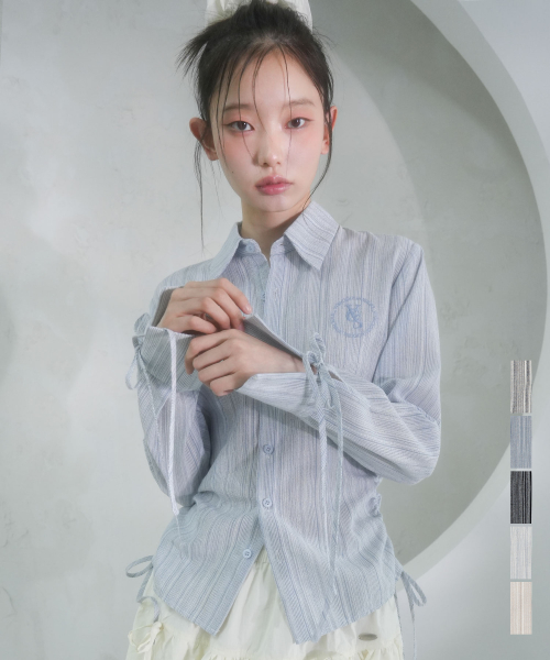 언발 컷팅 셔링 스트랩 사선 레이어드 롱슬리브리스 세트_2COLOR