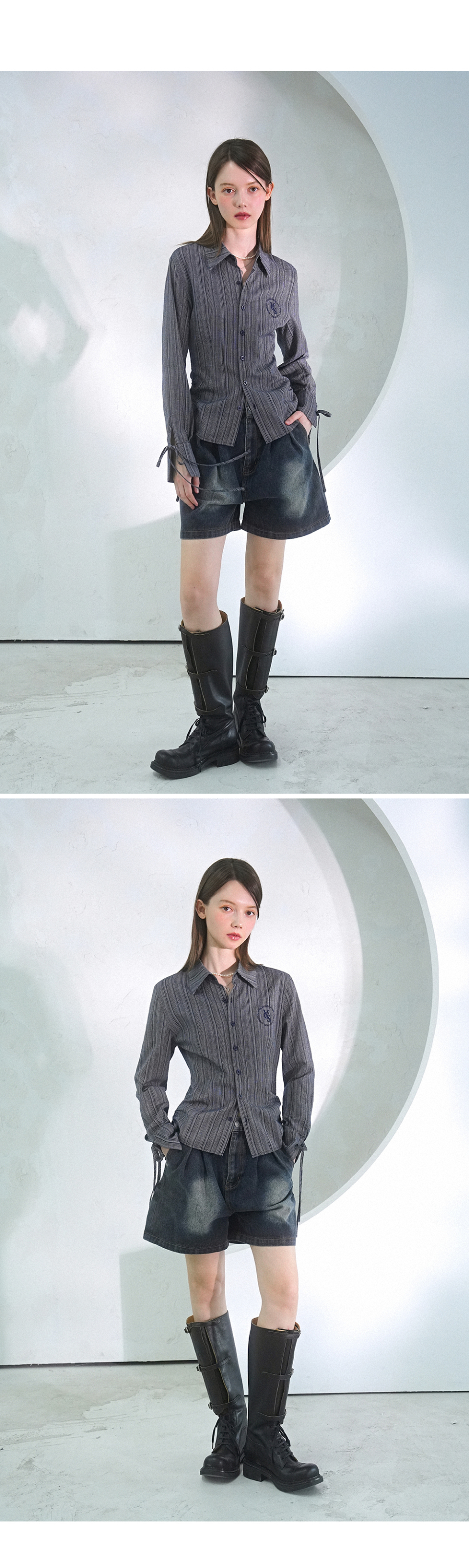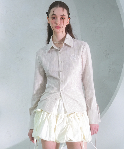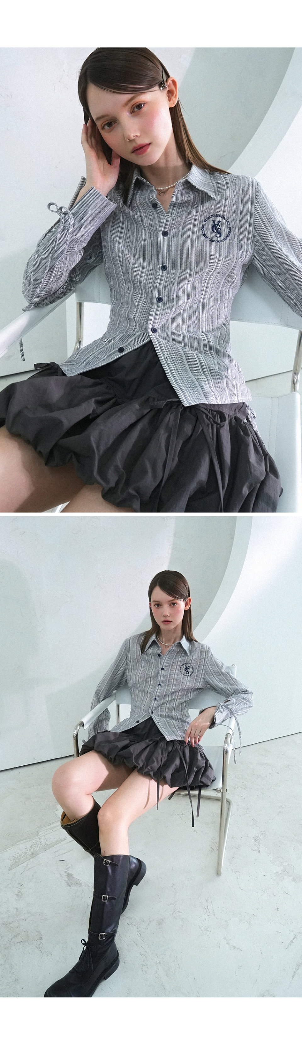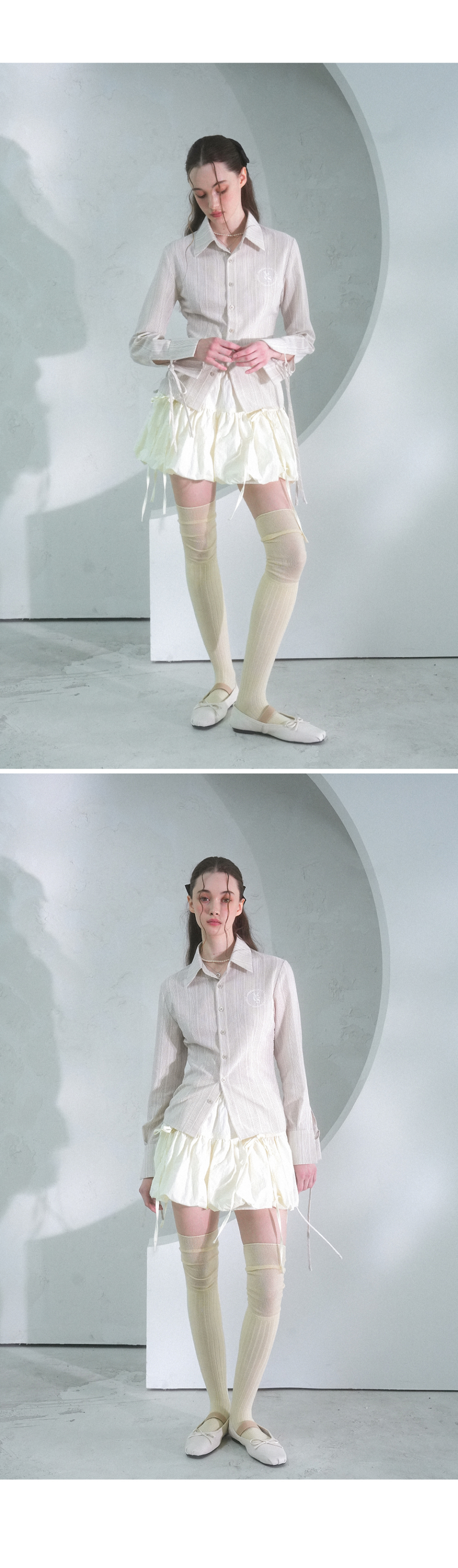 언발 컷팅 셔링 스트랩 사선 레이어드 롱슬리브리스 세트_2COLOR