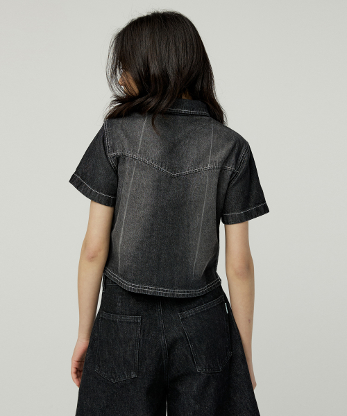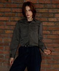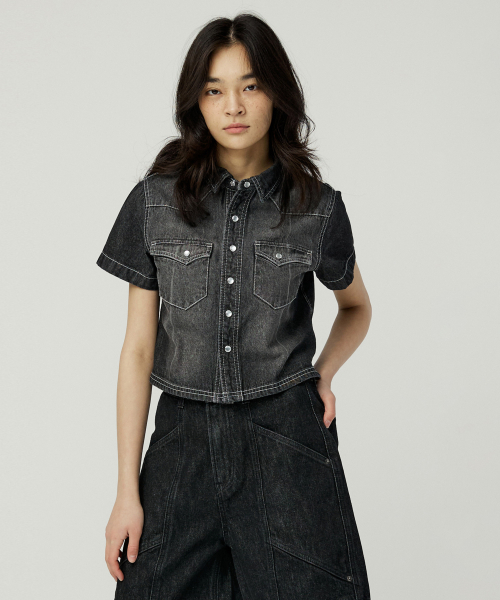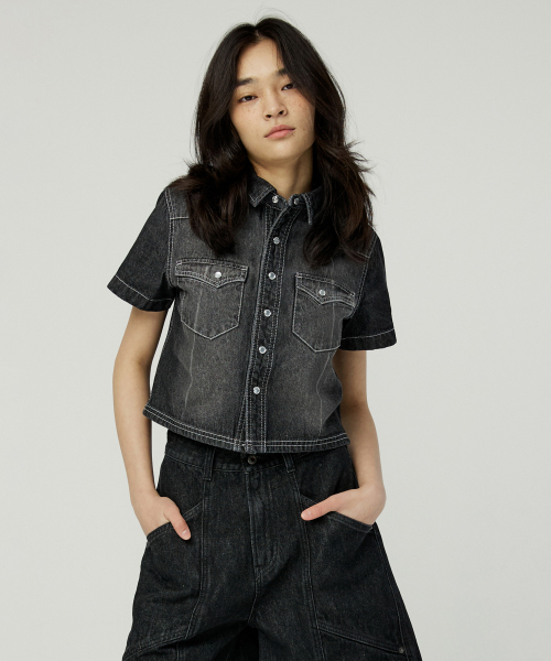 페머랄드 2203 워시드 그레이 크롭 웨스턴 셔츠
