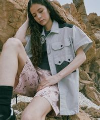 레이버 2907 오버핏 라이트그레이 유틸리티 반팔셔츠