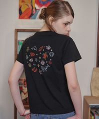 그래픽과 레터링을 전체 자수로 표현하여 작업된 디테일한 그래픽 디자인입니다.