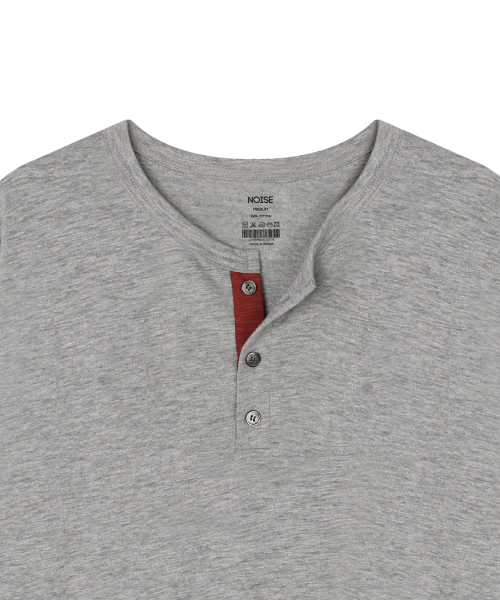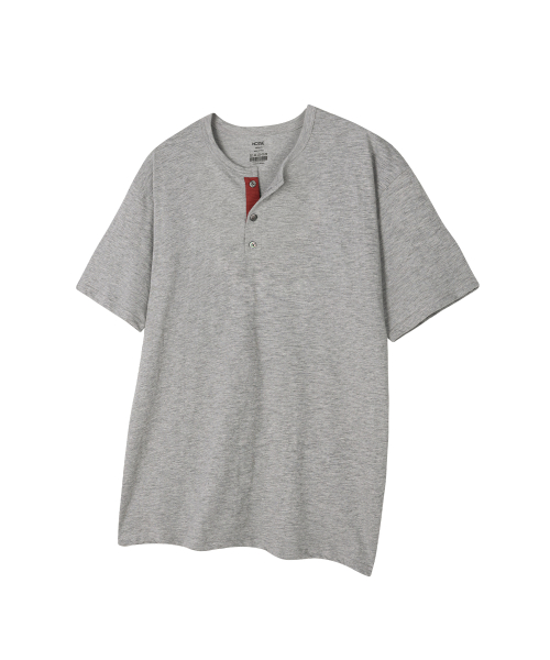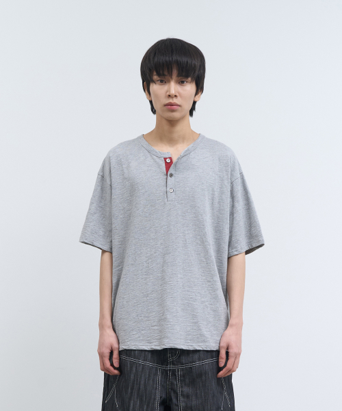슬랍 코튼 헨리넥 반팔 티셔츠 - 그레이