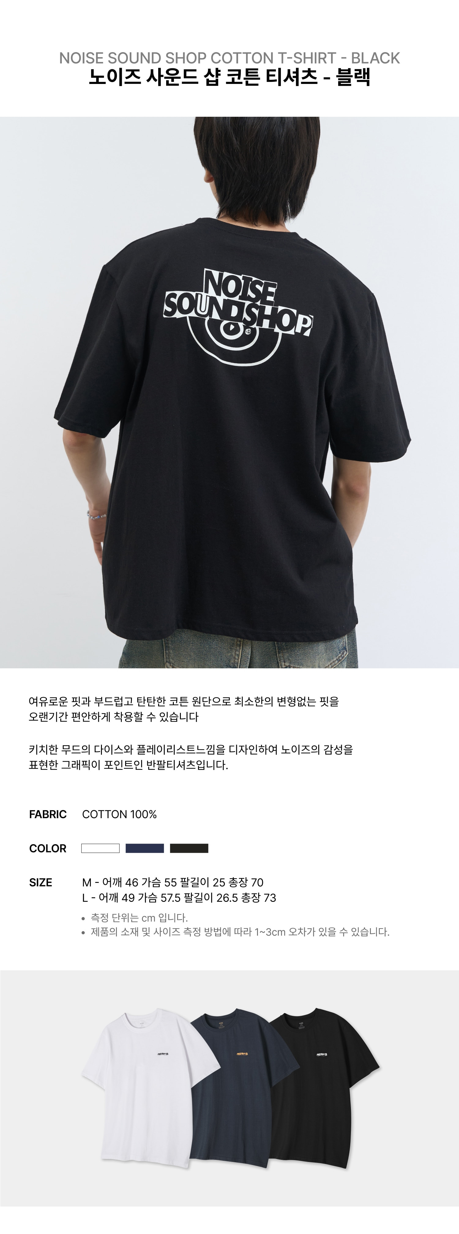 노이즈 사운드 샵 코튼 티셔츠 - 블랙