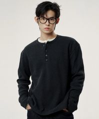 소프트 와플 헨리넥 티셔츠 - 차콜