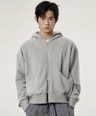 에센셜 코튼 후드 집업 - 그레이
