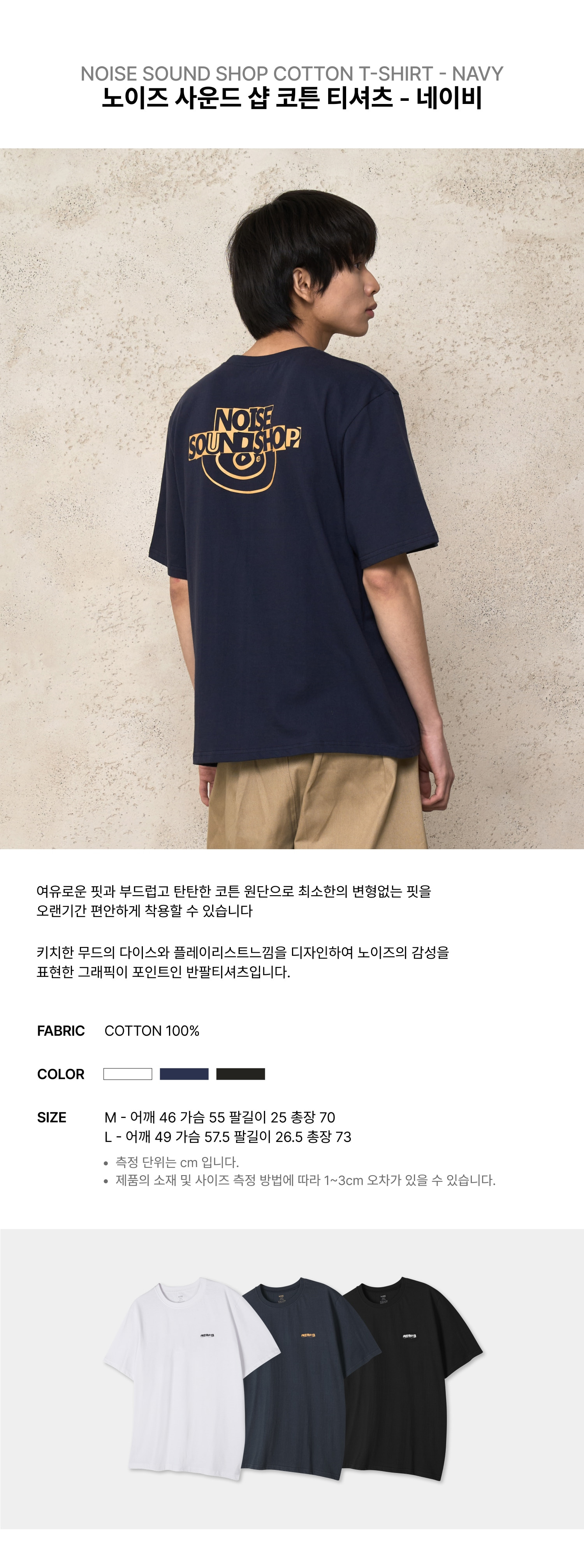 노이즈 사운드 샵 코튼 티셔츠 - 네이비