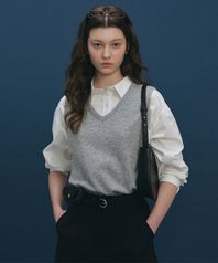 스프링 울 브이넥 베스트 - 멜란지 그레이