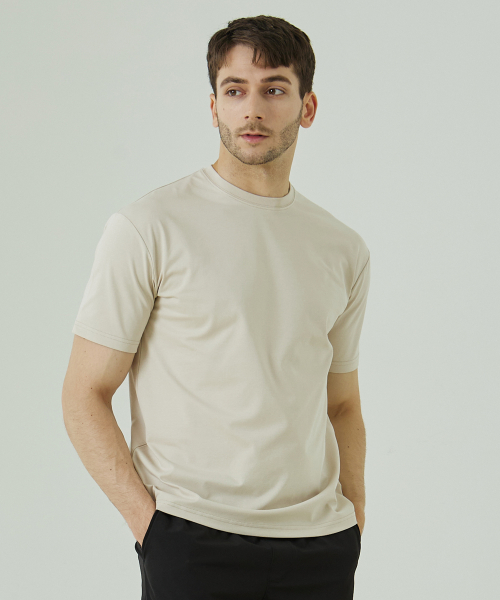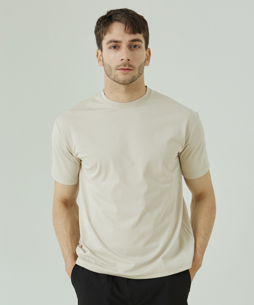 코튼 폴리 머슬핏 반팔티[라이트베이지]