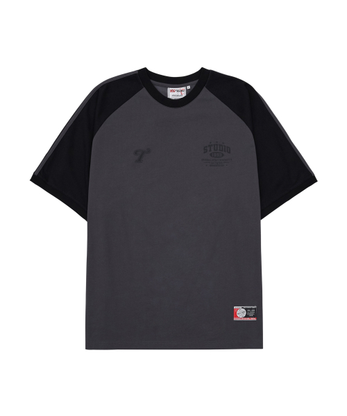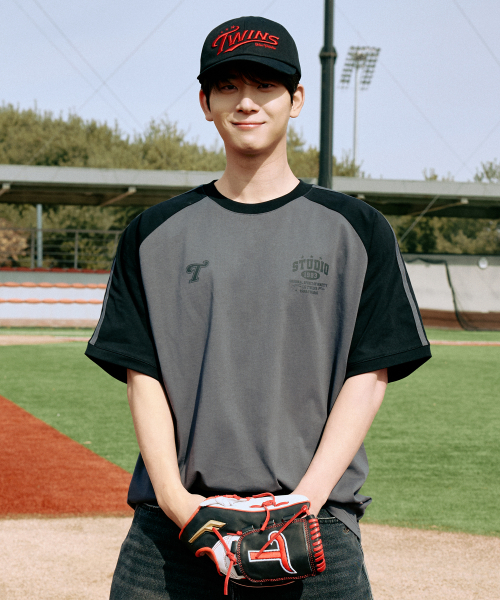 [LG트윈스x1993스튜디오] 래글런 배색 링거 티셔츠_차콜