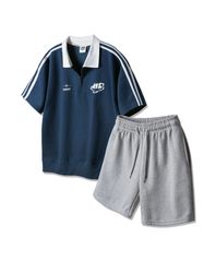 [SET] AVL 트랙 반집업 반팔 맨투맨 코튼 밴딩 스웨트 반바지 셋업