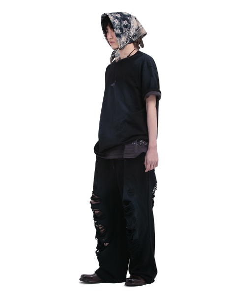CAT BLUSH WIDE PANTS [BLACK DENIM]