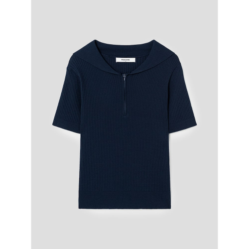 한여름까지 활용하기 좋은 가벼운 소재의 세일러카라 풀오버입니다. 슬림한 실루엣에 집업 디테일을 더하여 룩을 완성하였습니다.