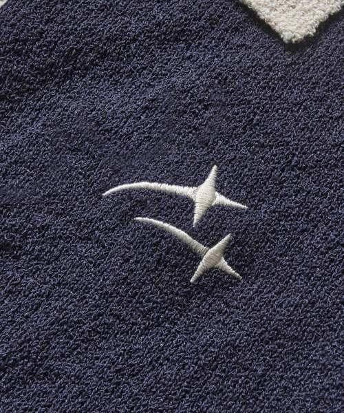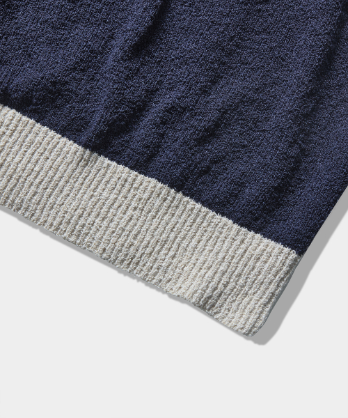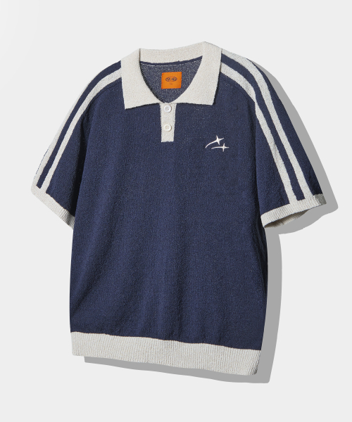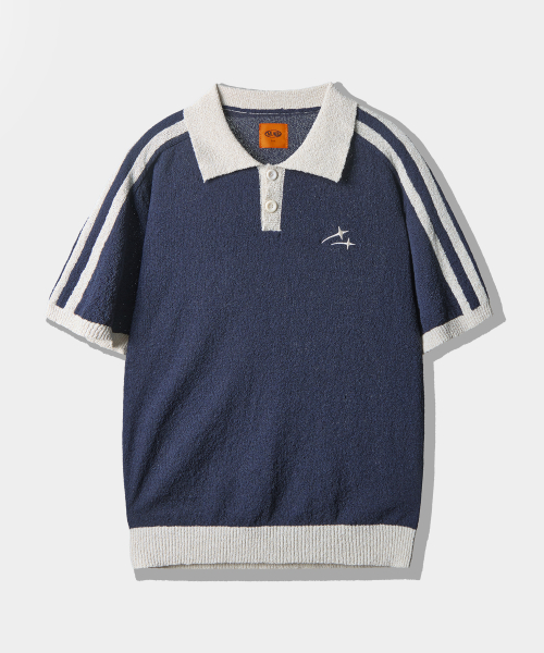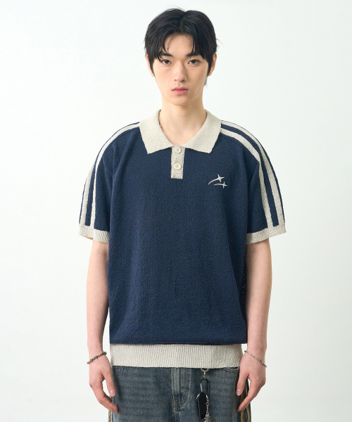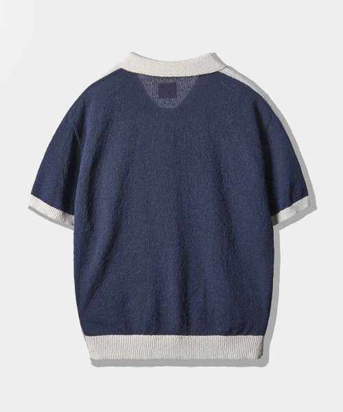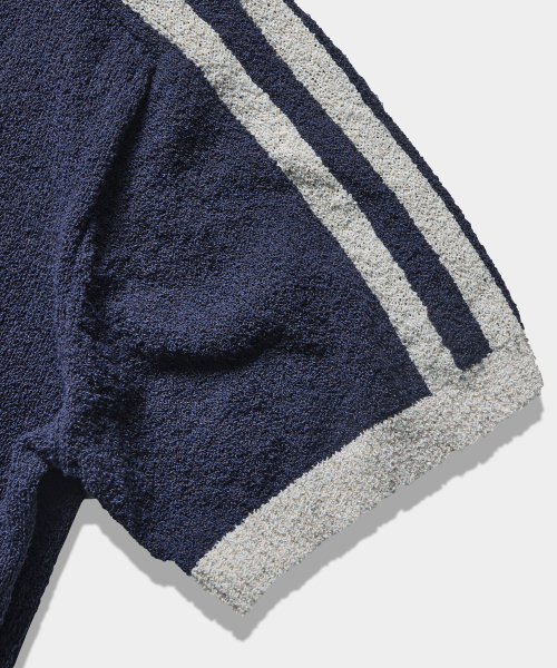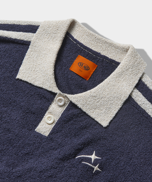 VLAD 트랙 부클 반팔 카라 니트_네이비