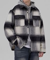 오버핏 헤비 투 포켓 체크 셔츠 자켓 블랙