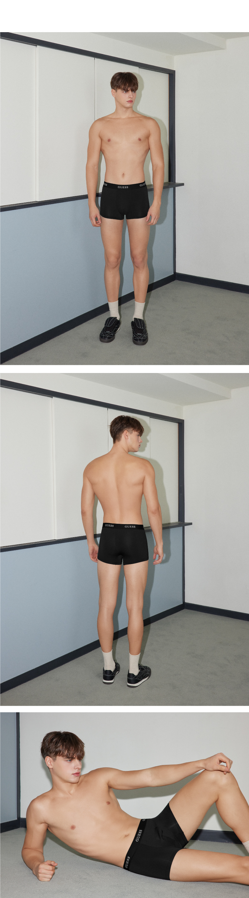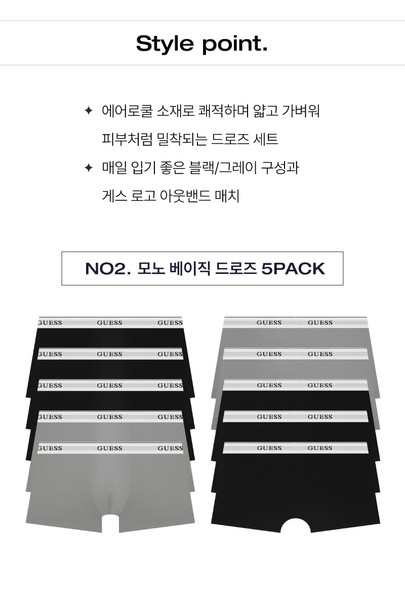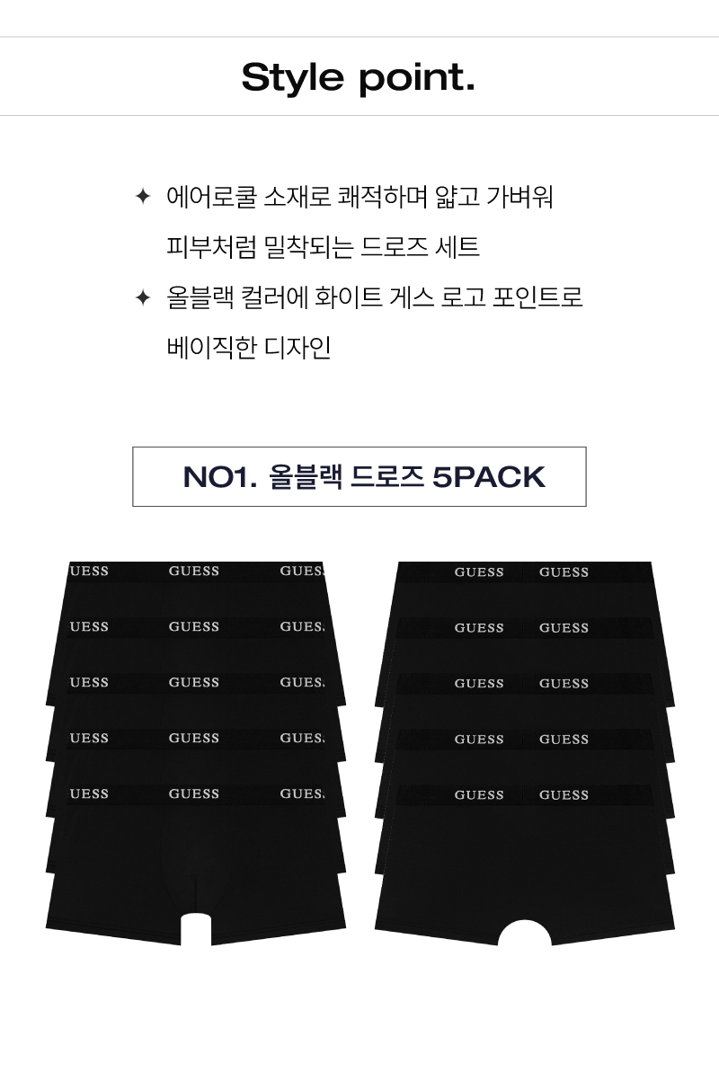 게스 언더웨어(GUESS UNDERWEAR)는 게스(GUESS)의 디자인에 한국인 체형에 맞춘 테크놀로지를 개발, 결합하여 뛰어난 품질의 언더웨어를 합리적인 가격에 제시합니다.