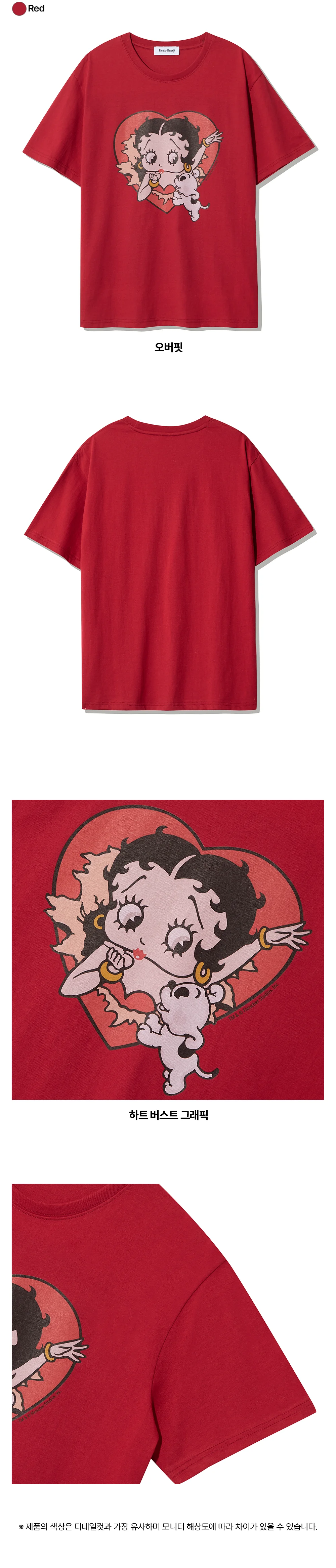 베티붑 하트 버스트 오버핏 반팔티_레드