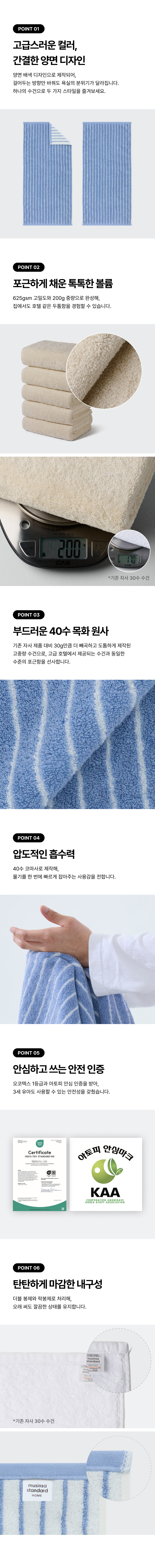 40수 200g 호텔 수건 5팩 [블루 스트라이프]