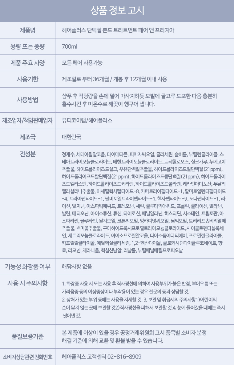 단백질 본드 페어 앤 프리지아 퍼퓸 트리트먼트 700ml 2개