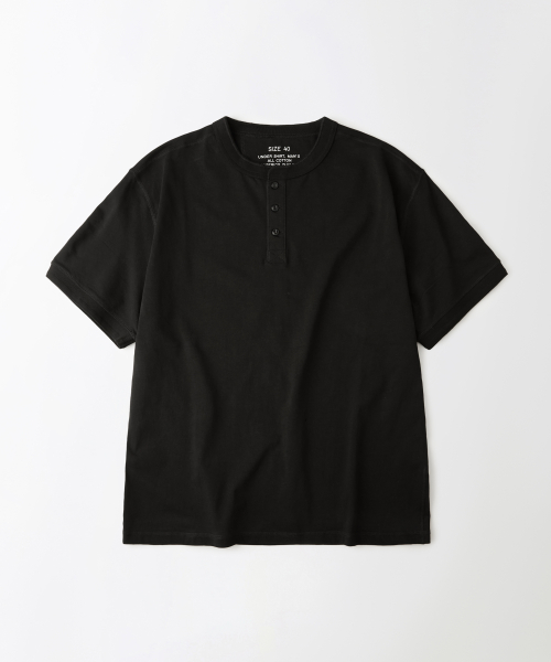 HENLEY NECK HALF SLEEVE TEE_BLACK