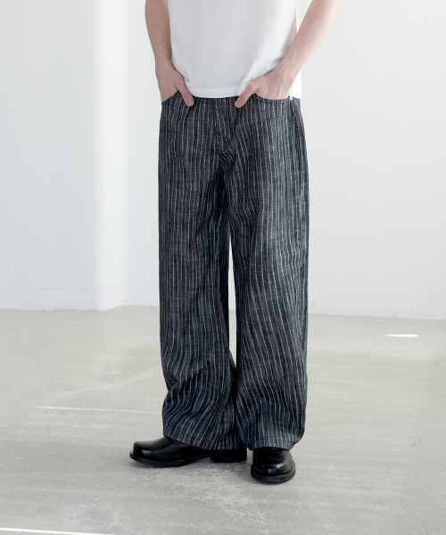 [-6cm 숏버전 추가] M267 썸머 스트라이프 와이드 팬츠_네이비
