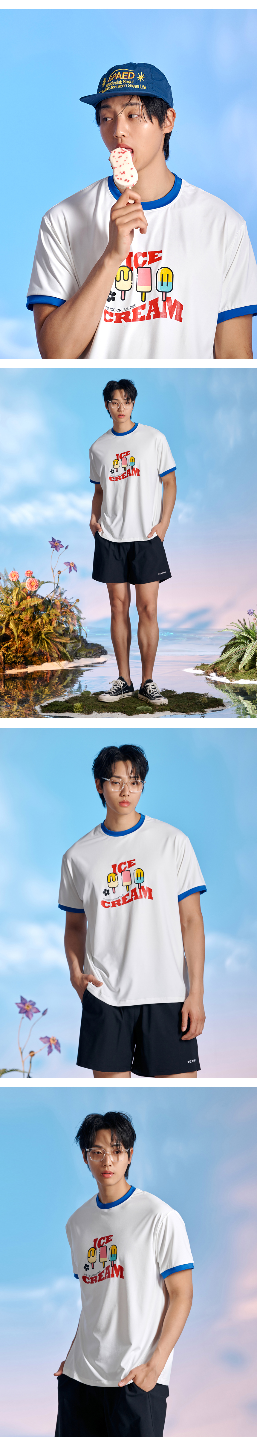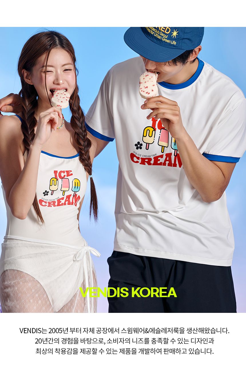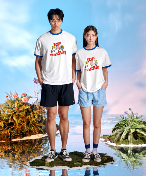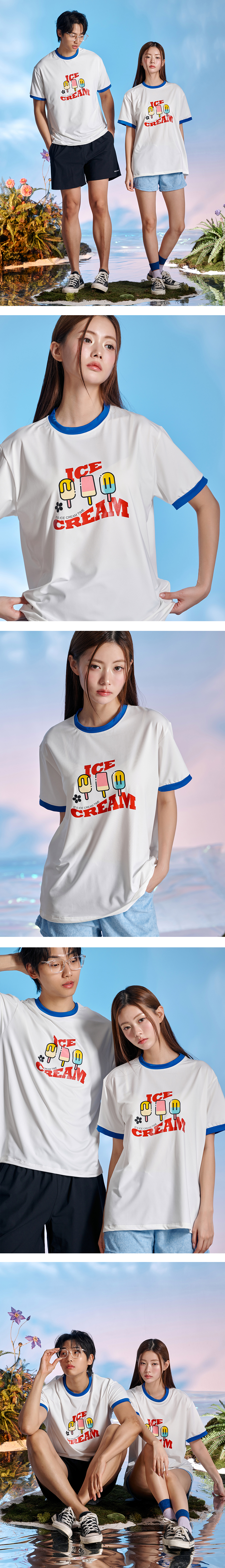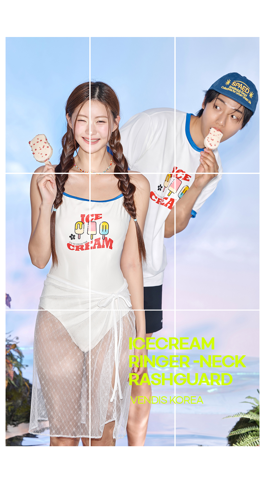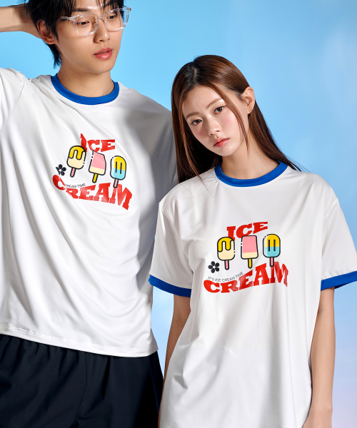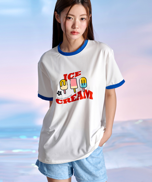 남녀공용 링거넥 아이스크림 반팔 래쉬가드