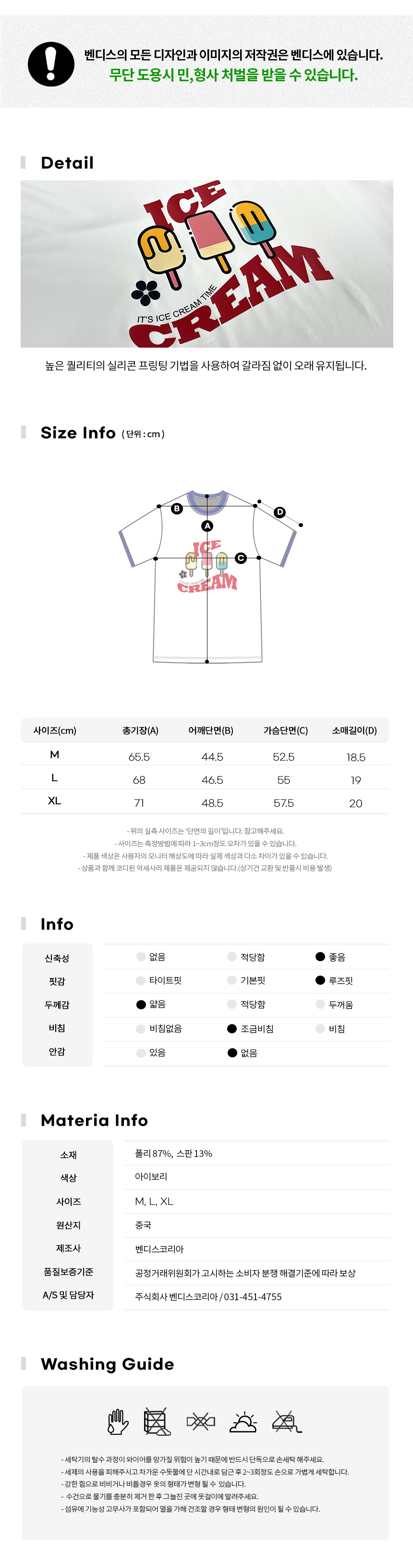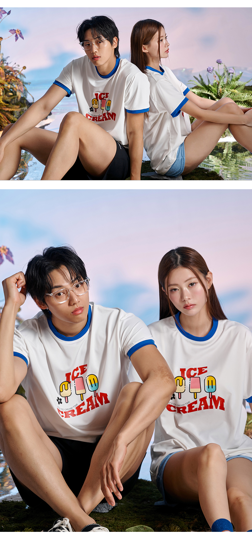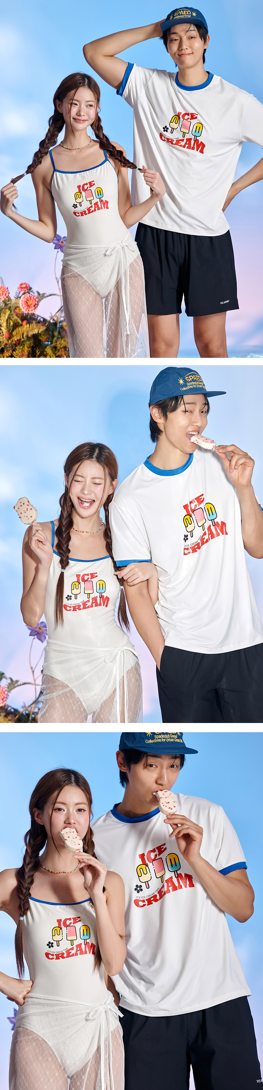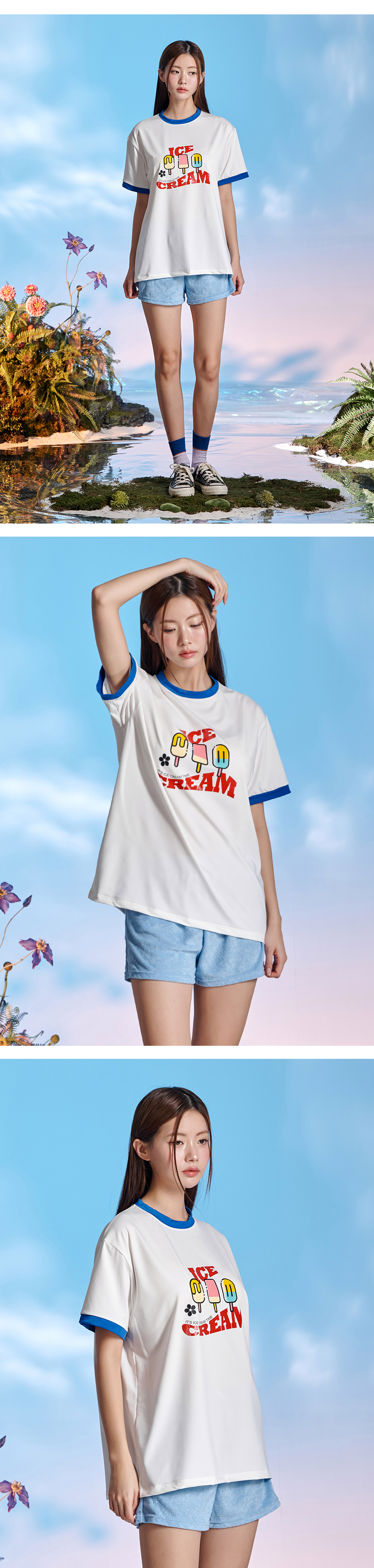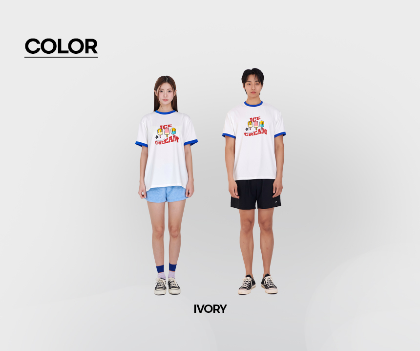 남녀공용 링거넥 아이스크림 반팔 래쉬가드