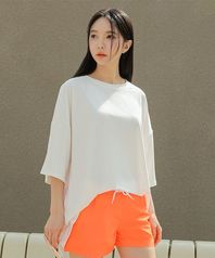 여성 크롭 래쉬가드 반팔 수영복 스티치