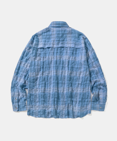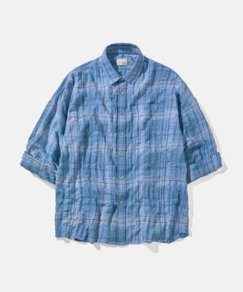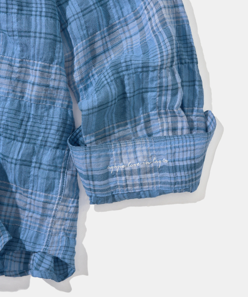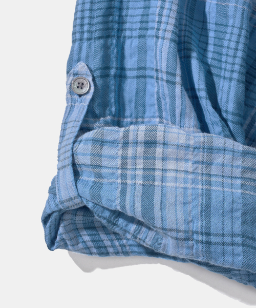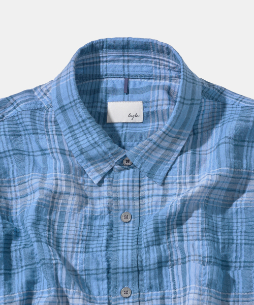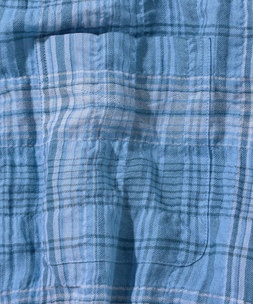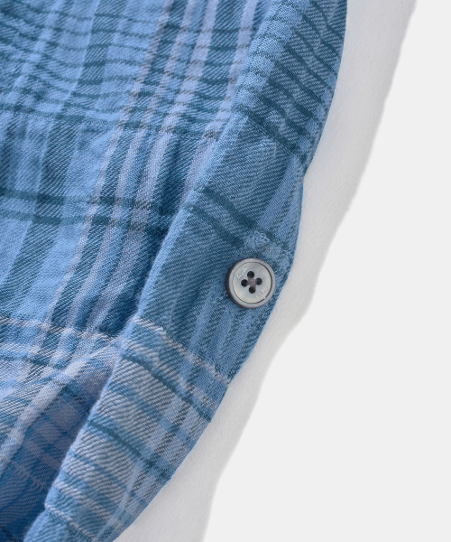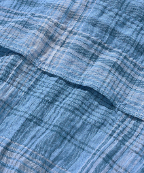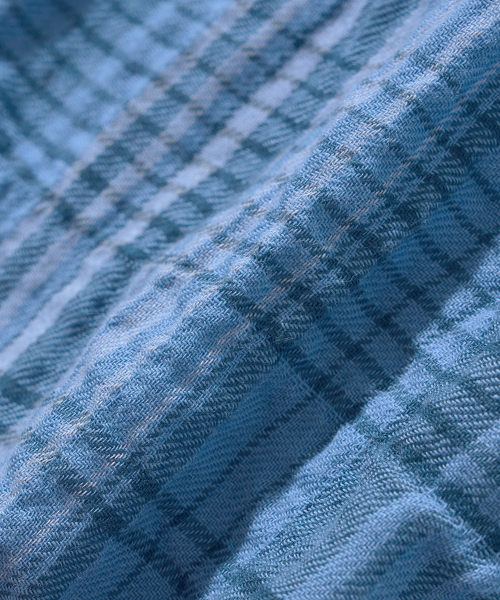 - 바다의 결을 닮은 깊은 청량감 위에 계절의 신세계를 시원하게 전해주는 Cotton 98%, PU 2% 혼방 체크 원단