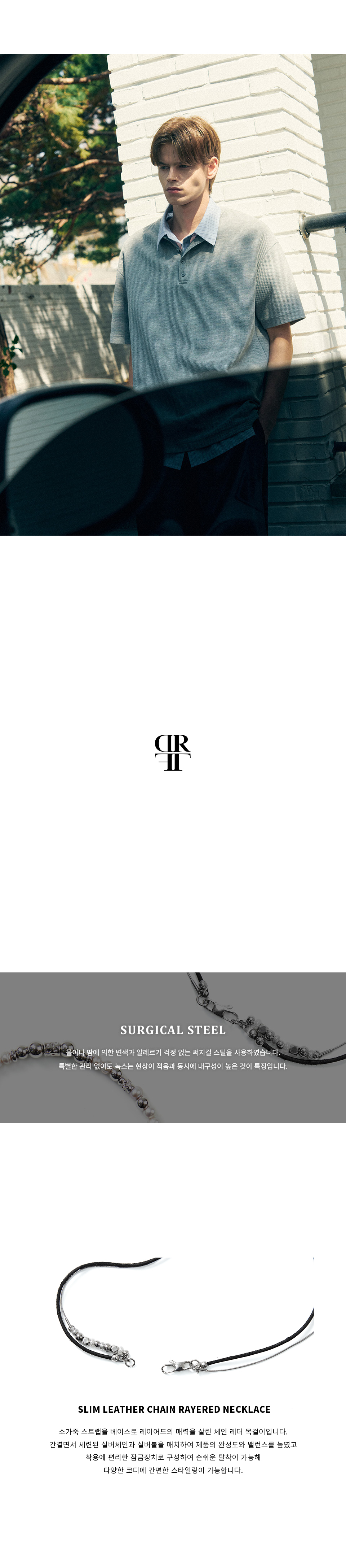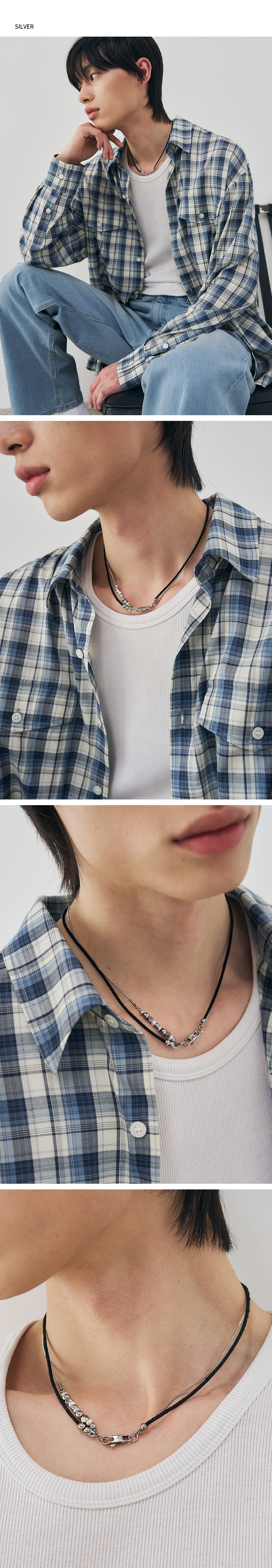 슬림 레더 체인 레이어드 네클리스 [SILVER]