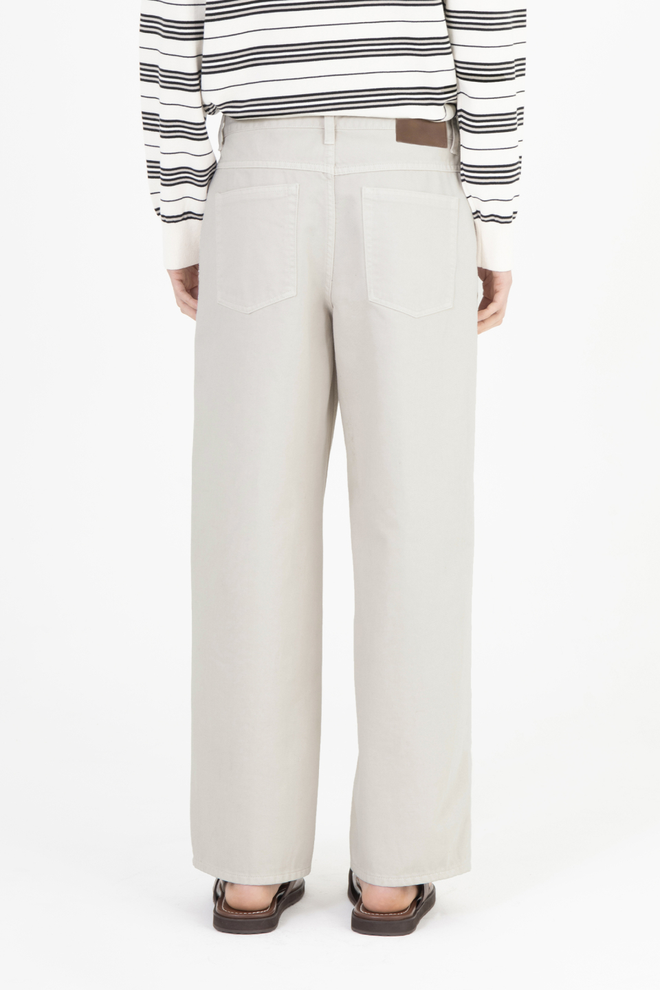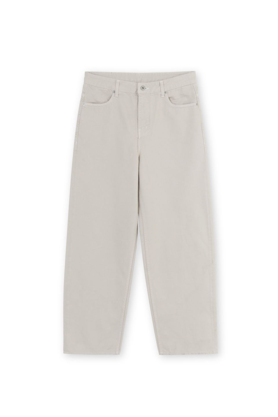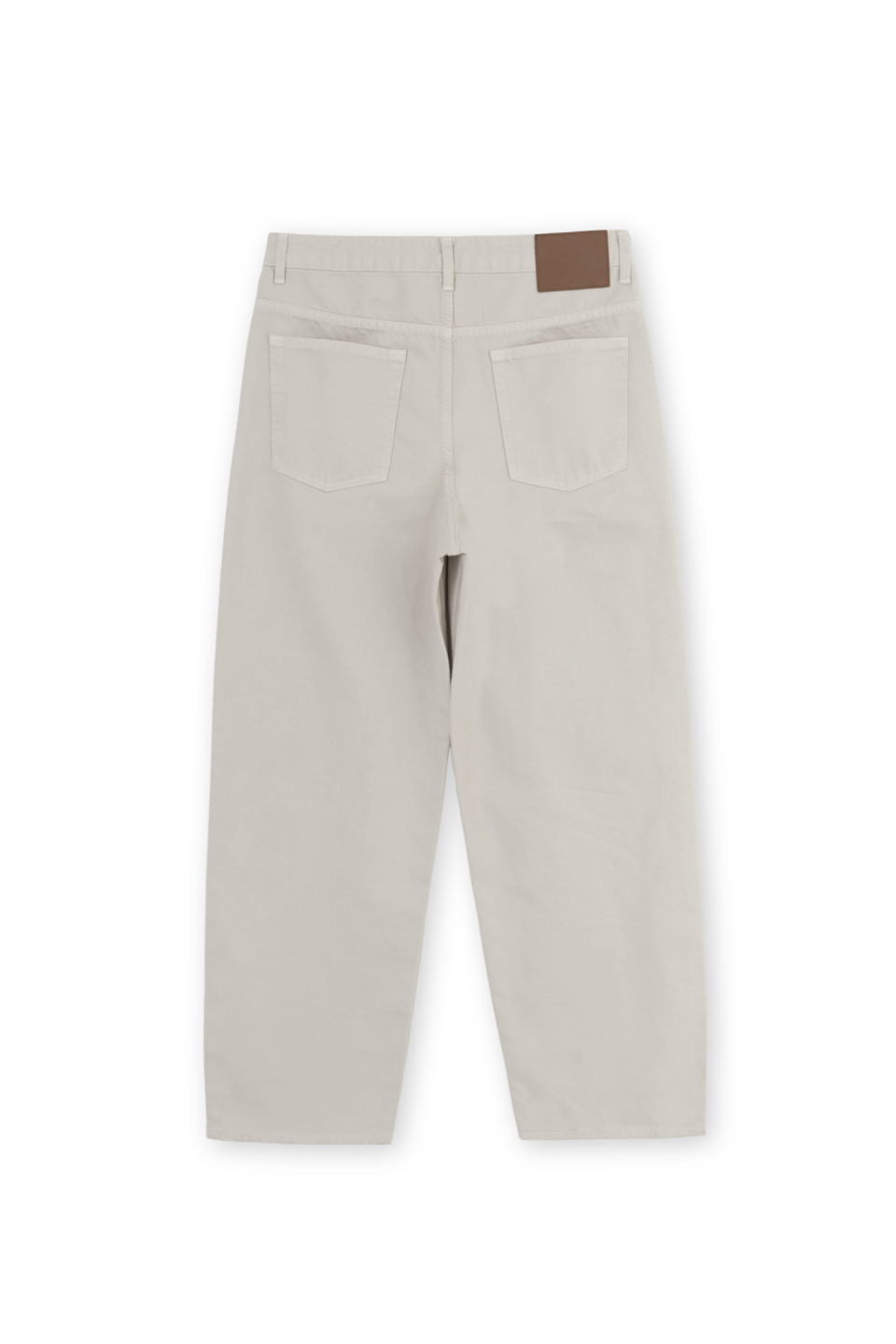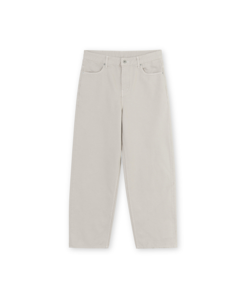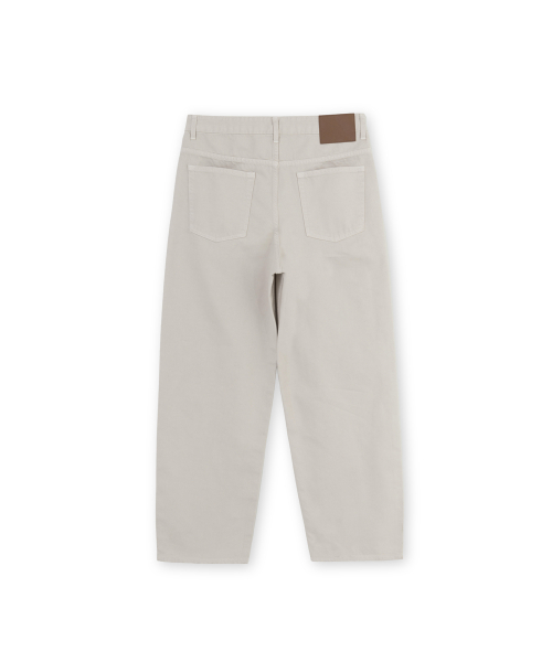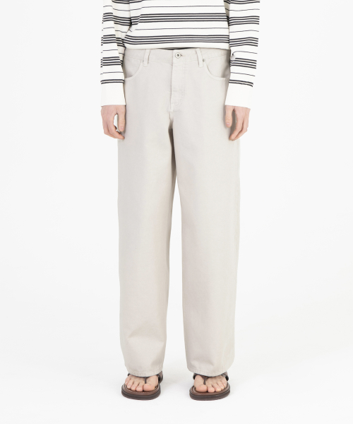 밑단까지 여유롭게 떨어지는 루즈한 핏의 와이드 데님으로 일자로 곧게 떨어지는 실루엣이 특징입니다.