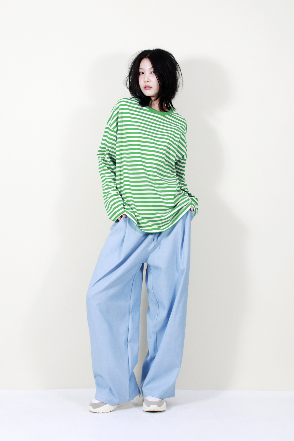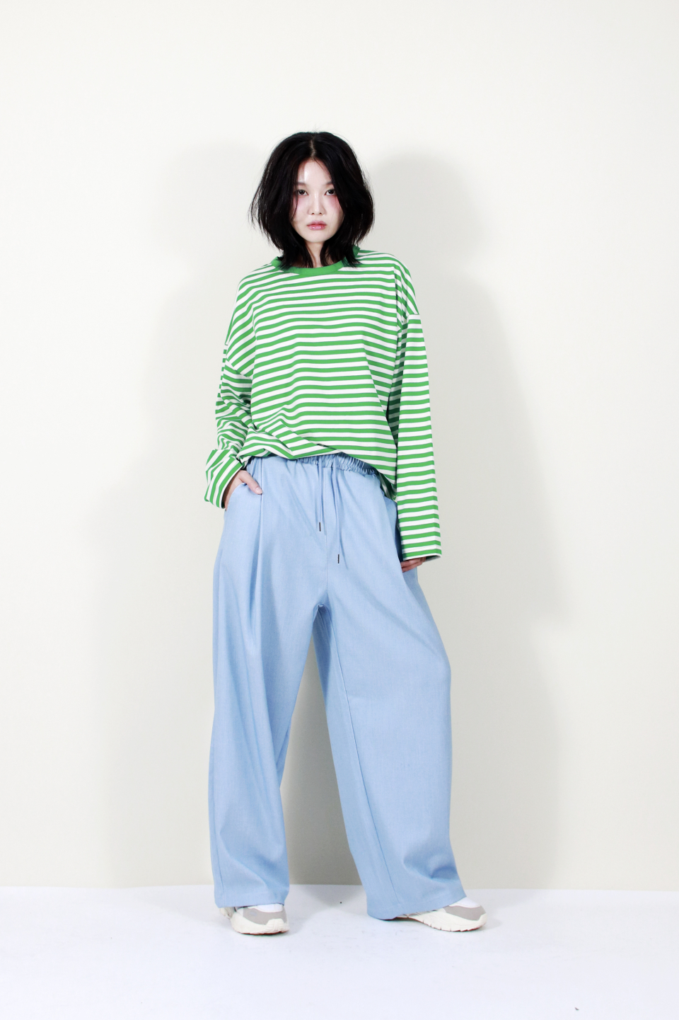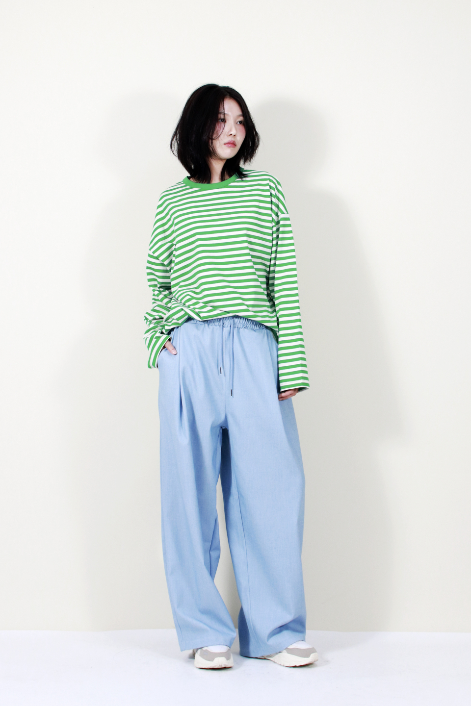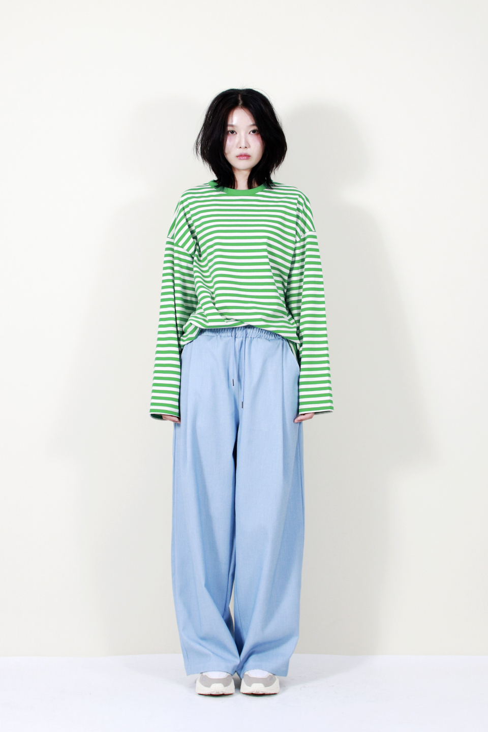 부드럽고 자연스럽게 떨어지는 소재감과 넓은 실루엣이 멋스러운 스타일을 완성해줍니다.