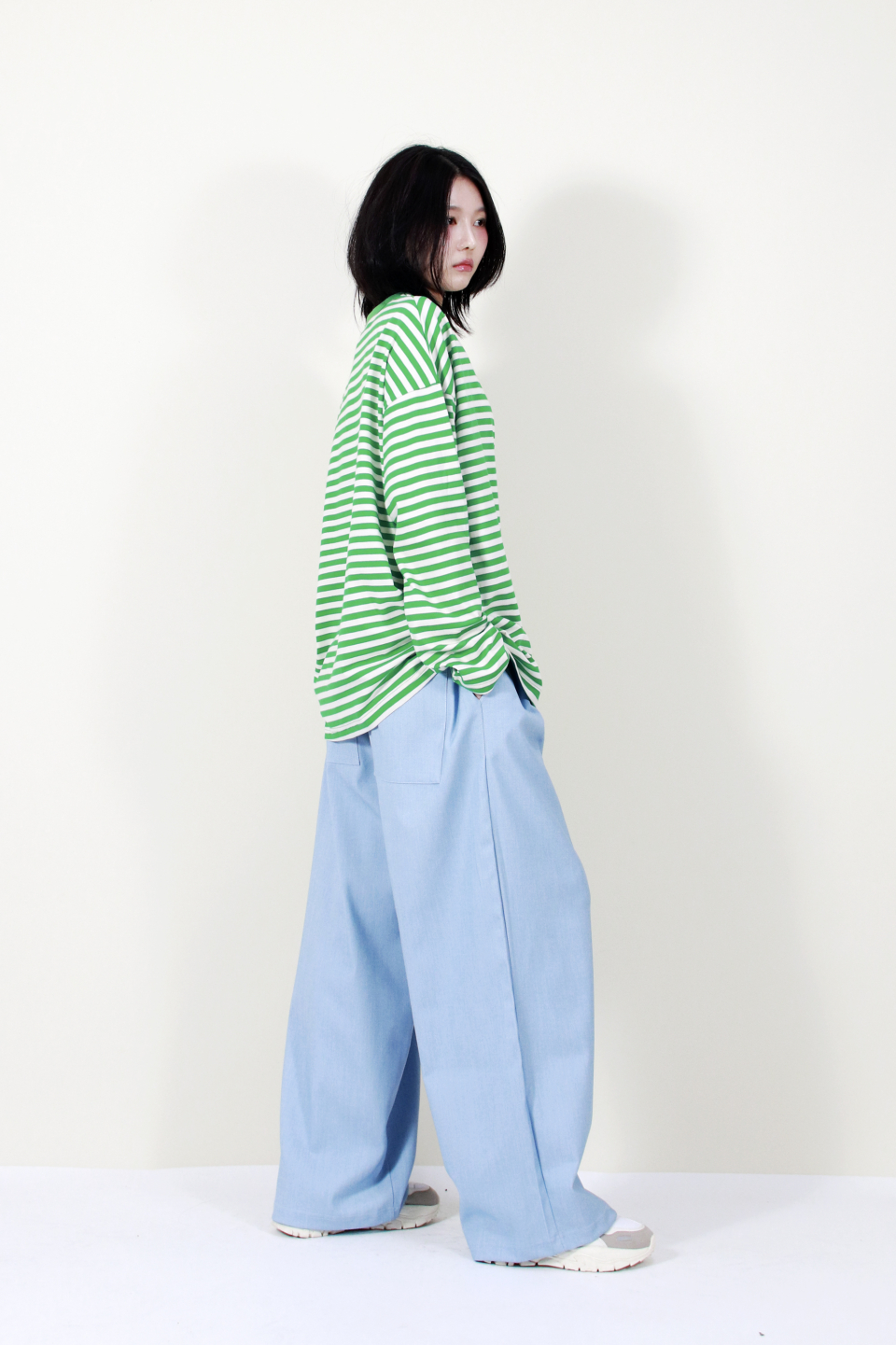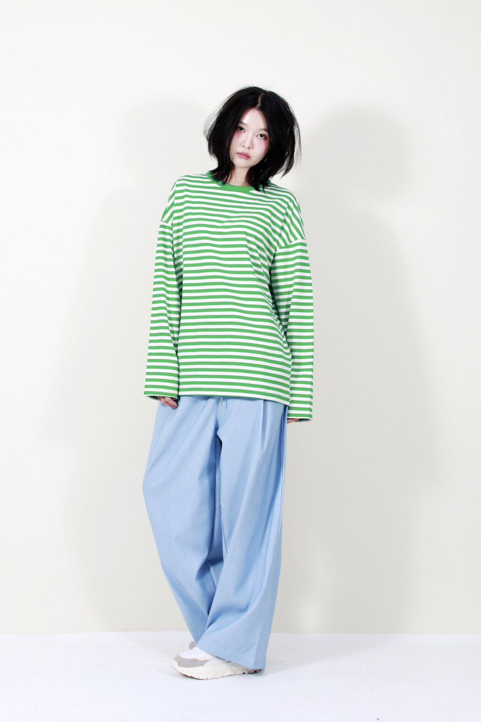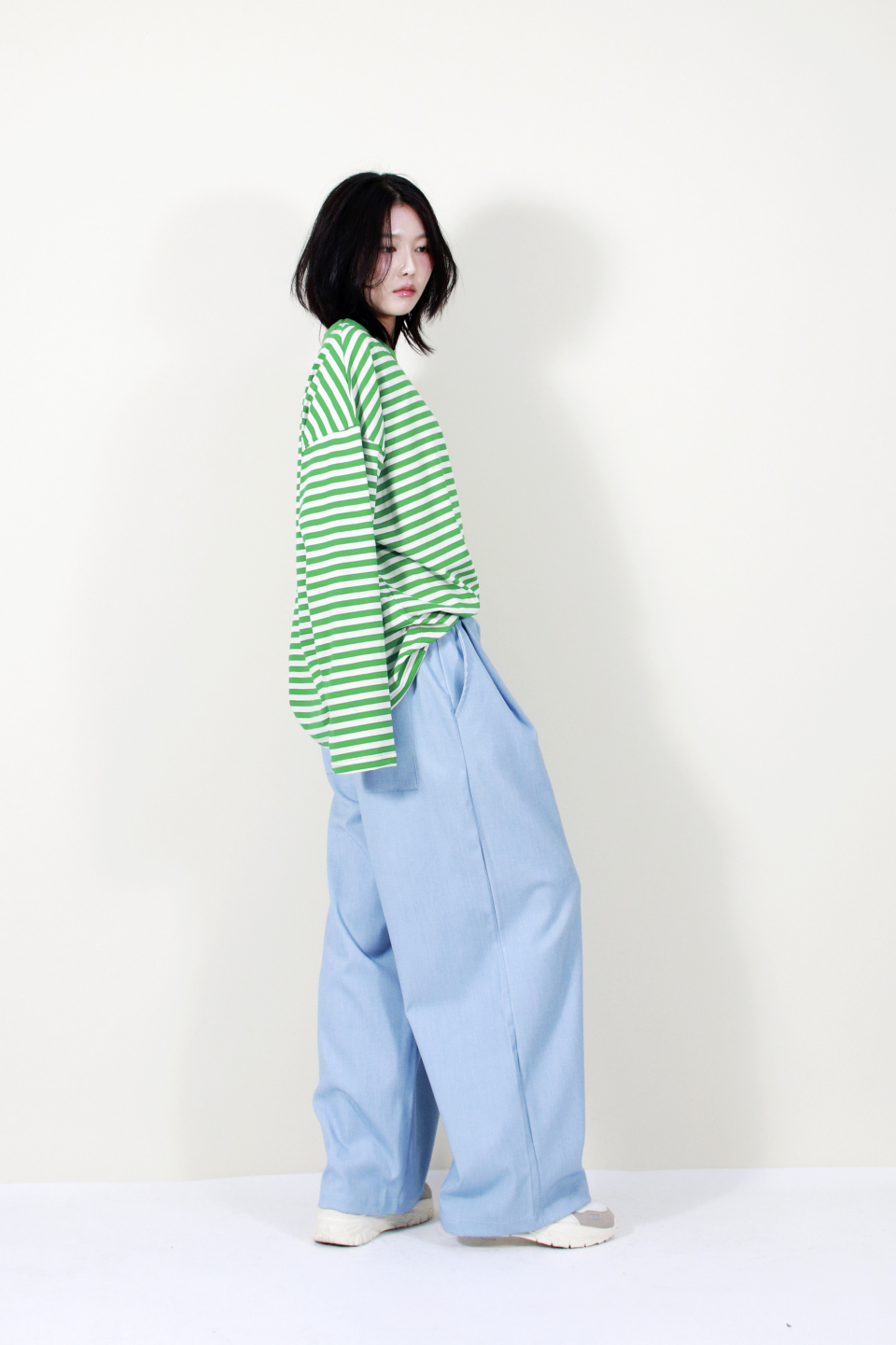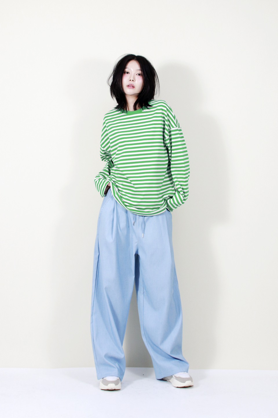 부드럽고 자연스럽게 떨어지는 소재감과 넓은 실루엣이 멋스러운 스타일을 완성해줍니다.