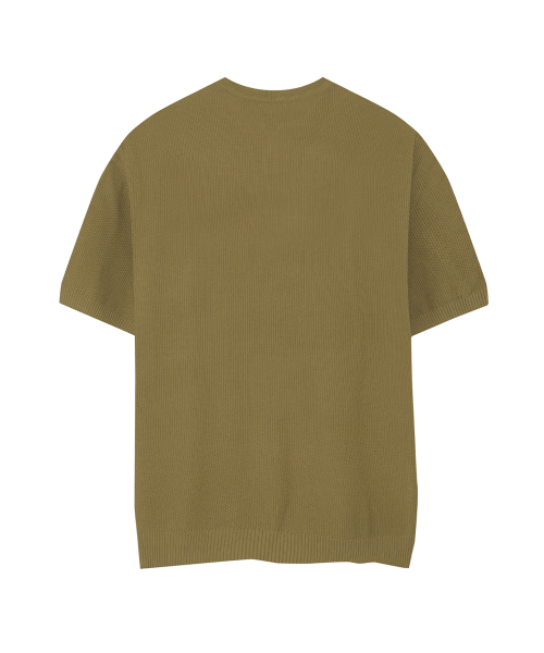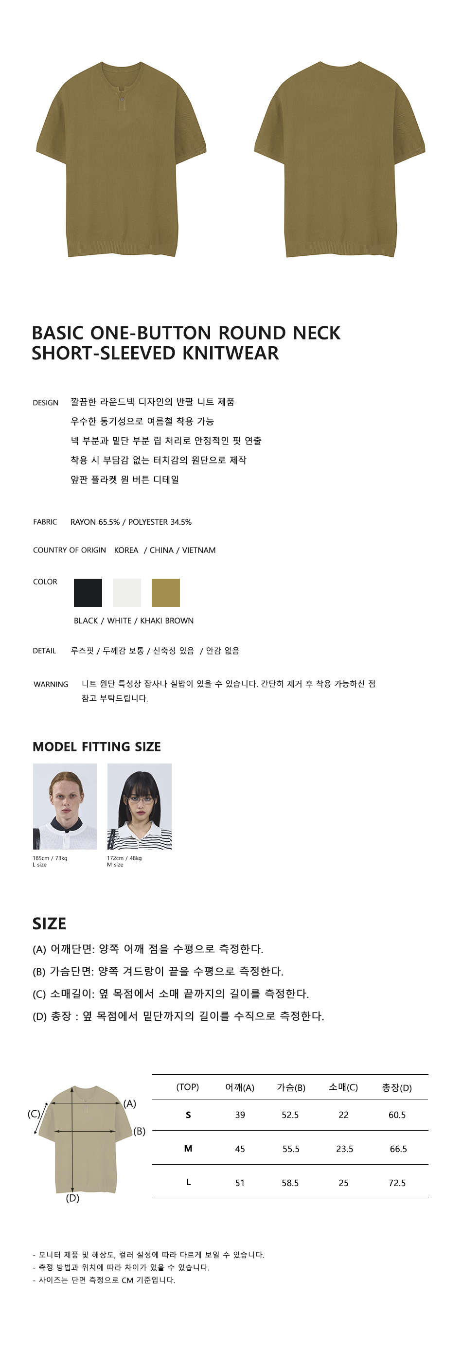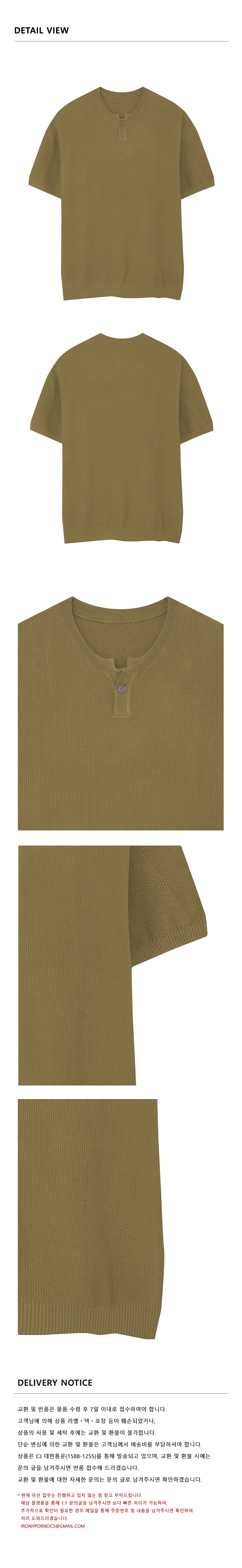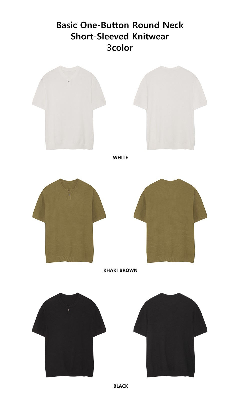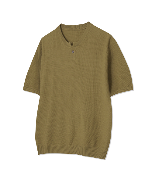 86-IRO355 베이직 원버튼 라운드 반팔 니트 카키브라운
