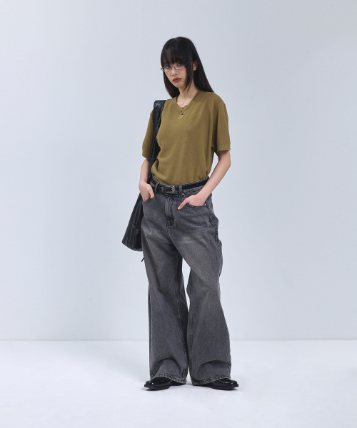 IRT110 [쿨니트] 라운드 슬릿 니트 반팔 소라