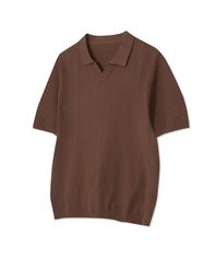 86-IRO353 테리 오픈넥 카라 반팔 니트 브라운
