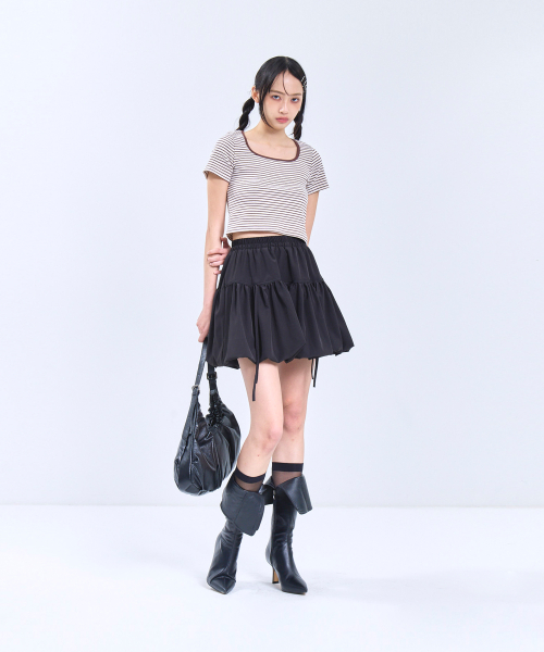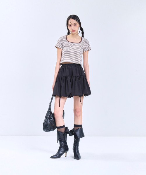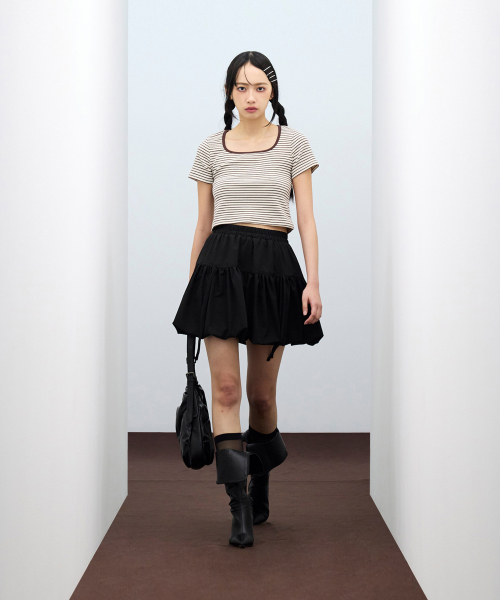 우먼즈 슬림 크롭 스퀘어 넥 버튼 티셔츠 [블랙]