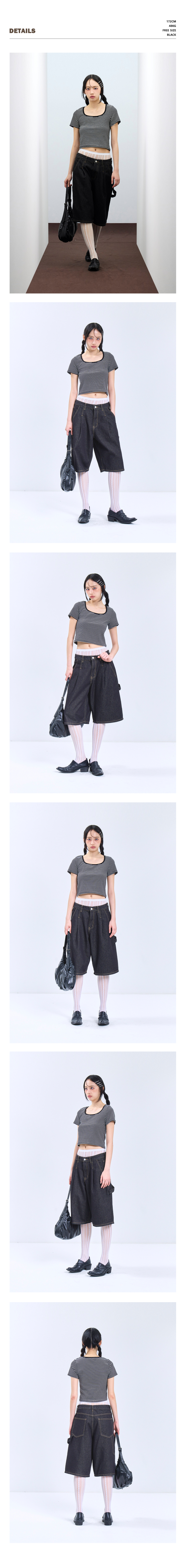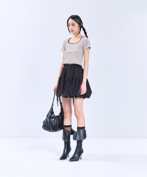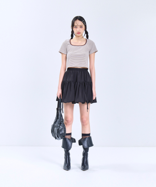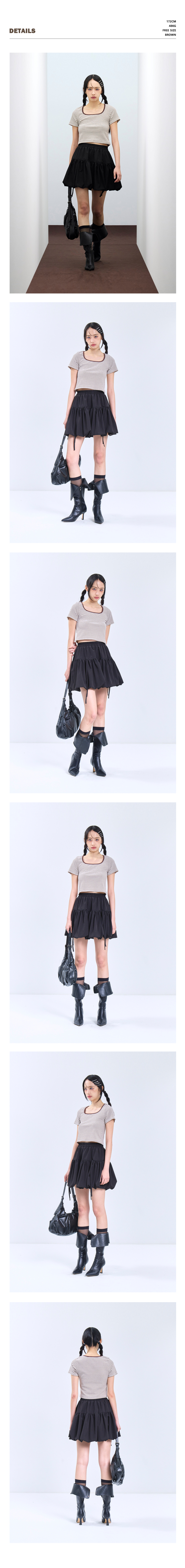 85-VIVA115 스퀘어 스트라이프 크롭 반팔 숏 슬리브 브라운