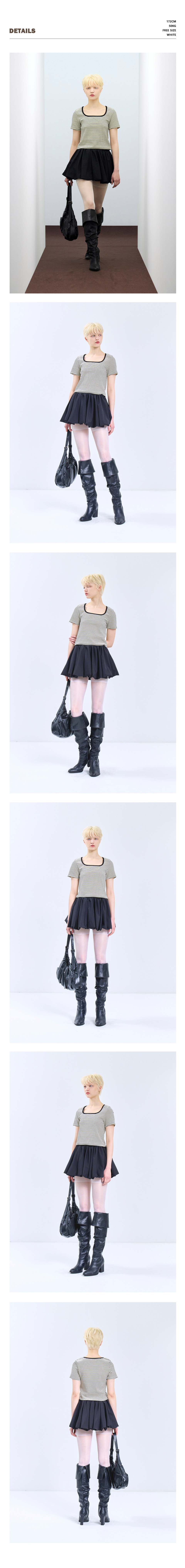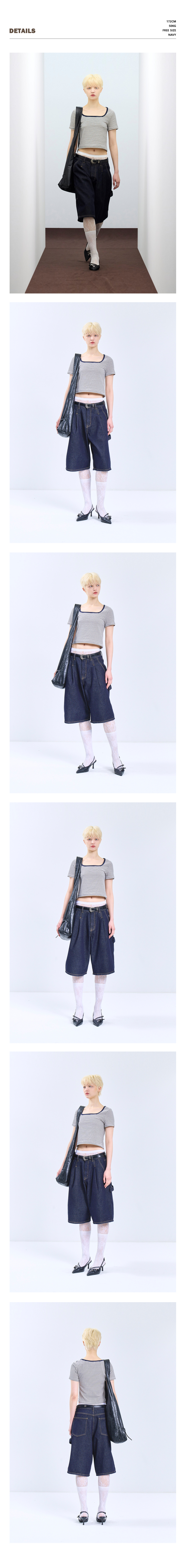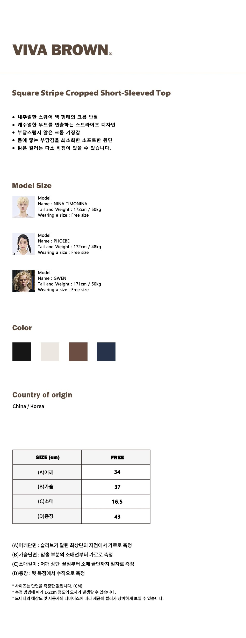 85-VIVA115 스퀘어 스트라이프 크롭 반팔 숏 슬리브 브라운