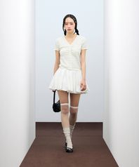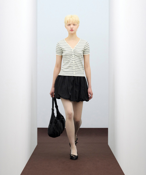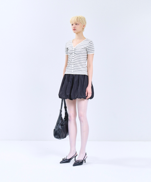 85-VIVA129 멀티 스트라이프 셔링 반팔 숏 슬리브 니트 아이보리