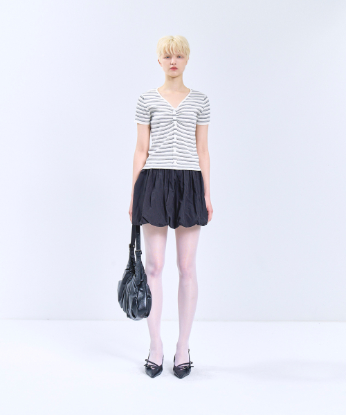 85-VIVA129 멀티 스트라이프 셔링 반팔 숏 슬리브 니트 그레이
