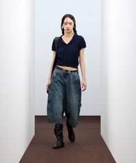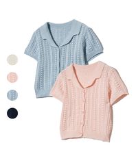 85-VIVA126 케이블 카라 반팔 숏 슬리브 니트 가디건 네이비