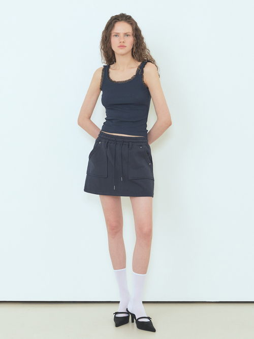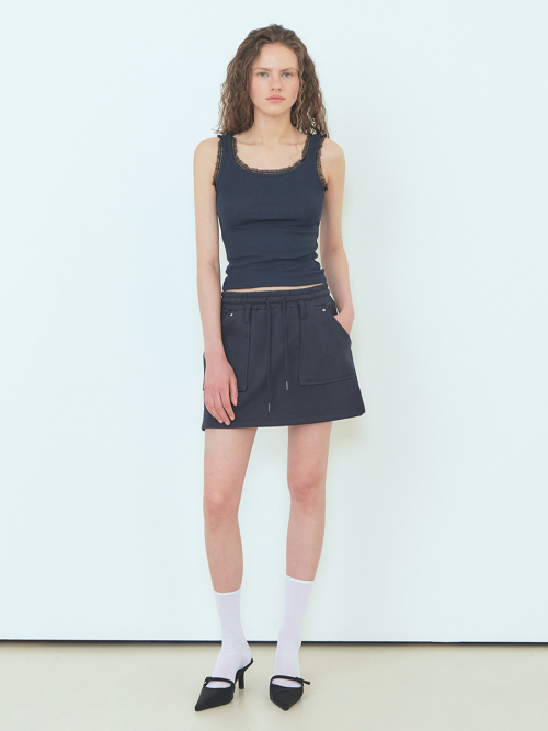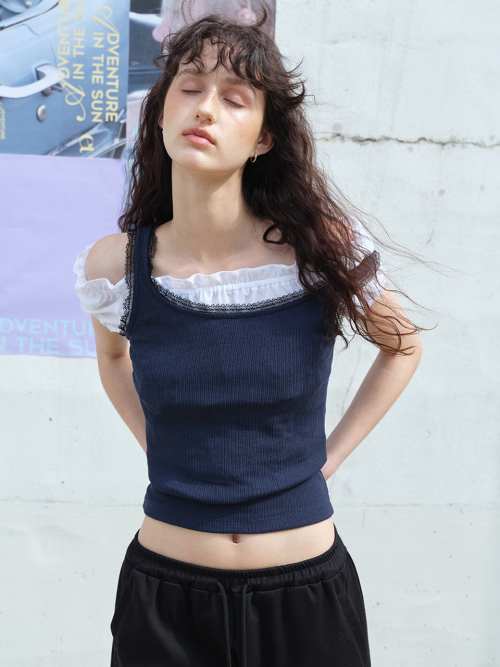 Lace Ribbed Sleeveless Top Navy