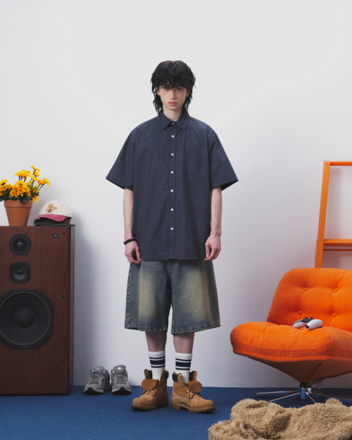 시티보이 워시드 코튼 오버핏 반팔 셔츠_네이비